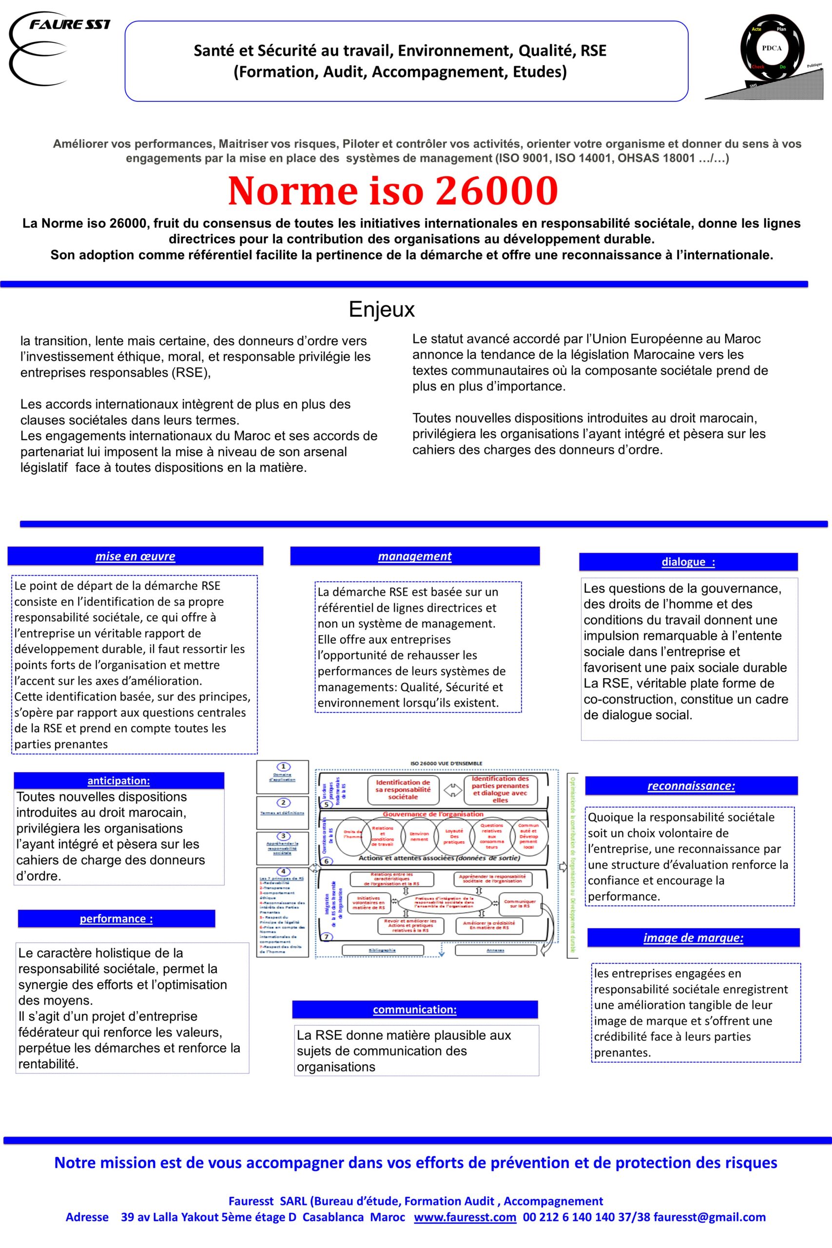 Créée en 2011, FAURESST est un bureau d'étude et d'expertise spécialisé en Qualité, Santé, Sécurité, Sûreté, Environnement et Responsabilité Sociétale (QSE-SST-RSE).